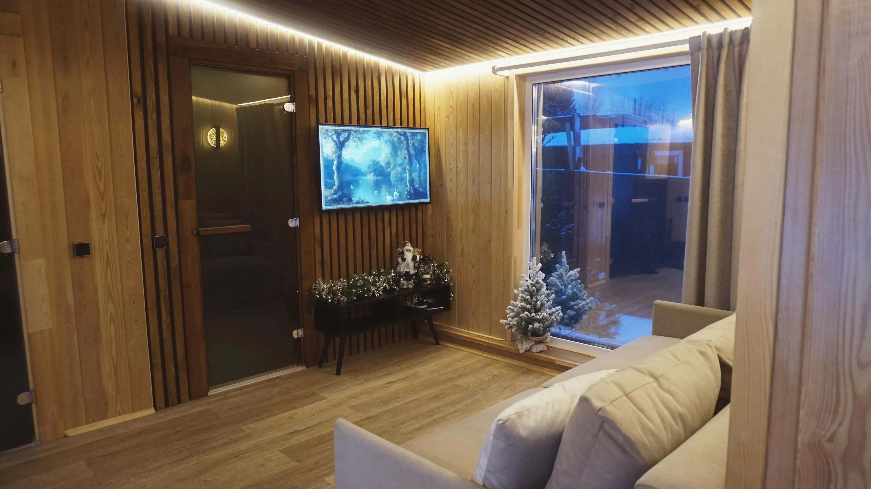 К вашим услугам просторная баня на дровах, горячая купель под открытым небом, полностью оборудованная кухня, гостиная зона, спальня и собственная барбекю-зона. Дом идеально подойдёт для семейного отдыха, романтического уикенда или встречи с друзьями.